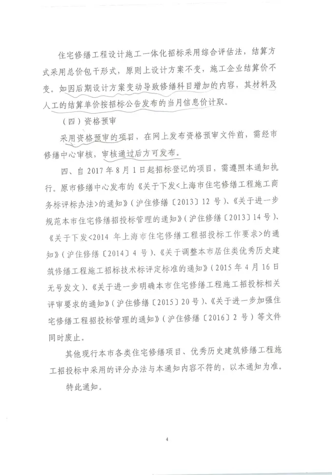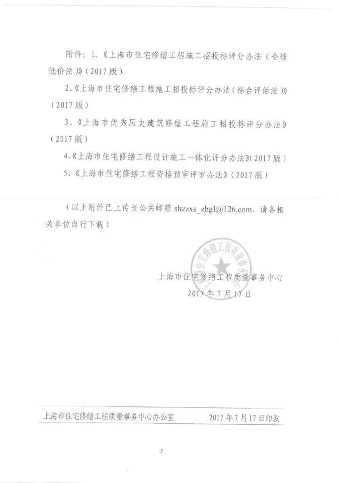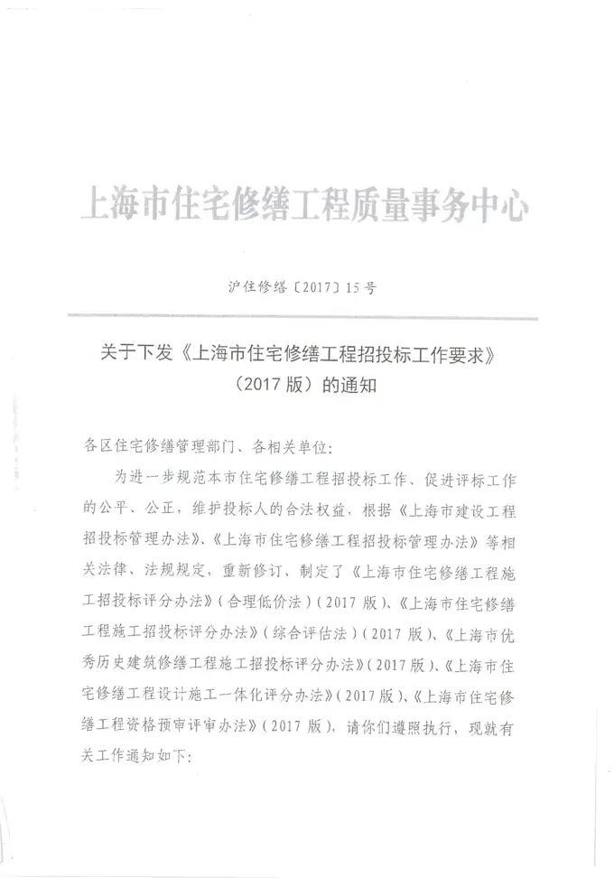 关于下发《上海市住宅修缮工程招投标工作要求》(2017版)的通知(沪住修缮[2017]15号)