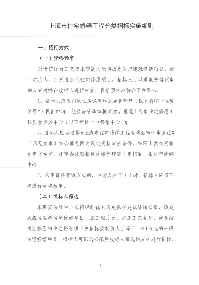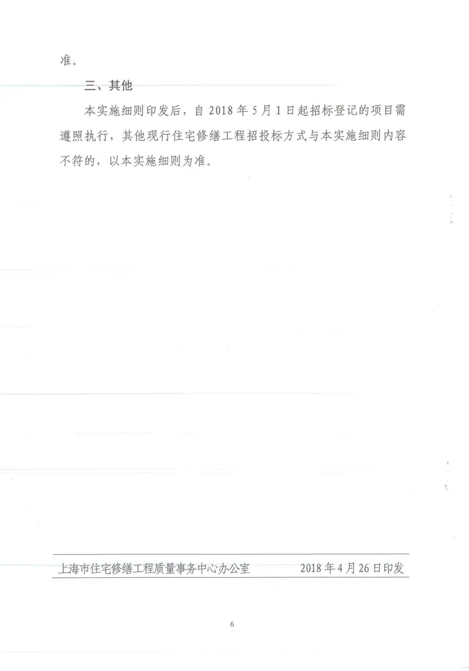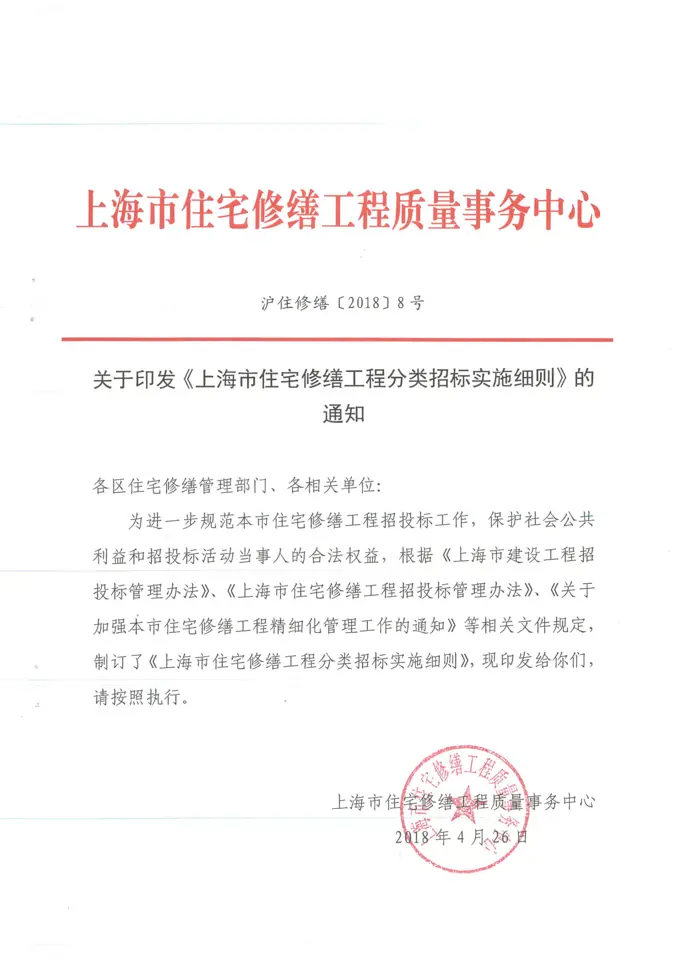 关于印发《上海市住宅修缮工程分类招标实施细则》的通知 (沪住修缮[2018]8号)