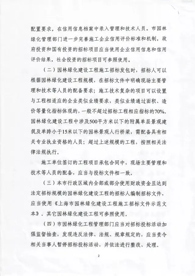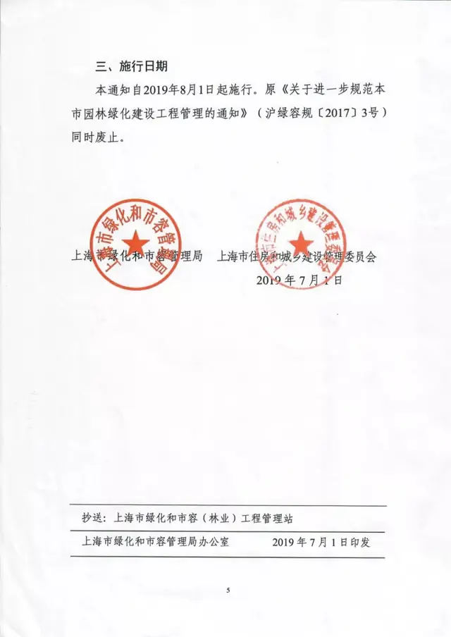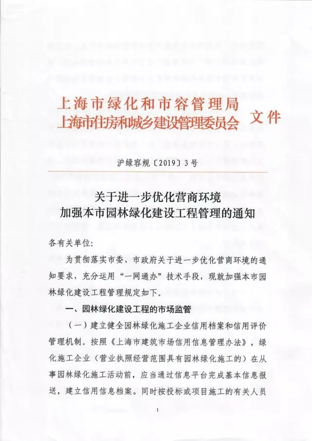 关于进一步优化营商环境加强本市园林绿化建设工程管理的通知 (沪绿容规[2019]3号)