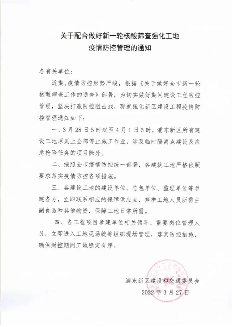 关于配合做好新一轮核酸筛查强化工地疫情防控管理的通知