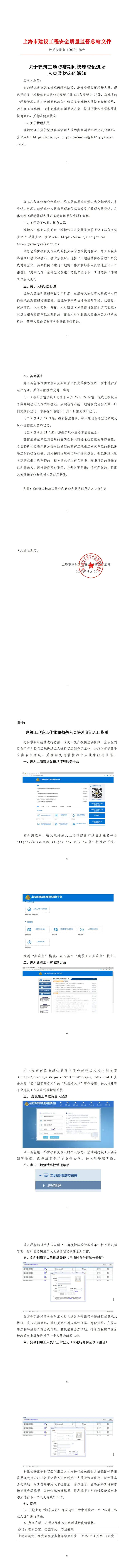 沪建安质监〔2022〕28号《关于建筑工地防疫期间快速登记进场 人员及状态的通知》