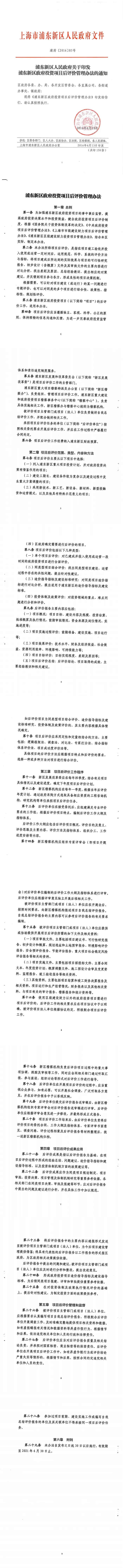 关于印发浦东新区政府投资项目后评价管理办法的通知 【浦府〔2016〕85号】
