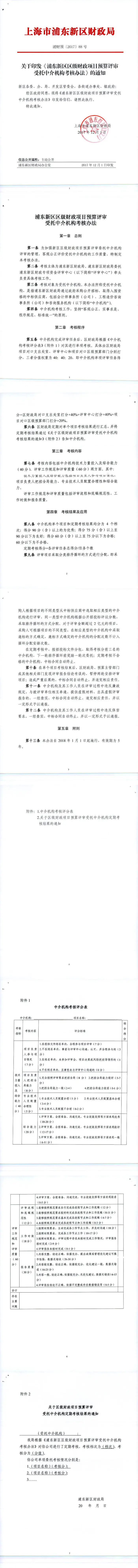 关于印发《浦东新区区级财政项目预算评审受托中介机构考核办法》的通知【浦财预〔2017〕88号】