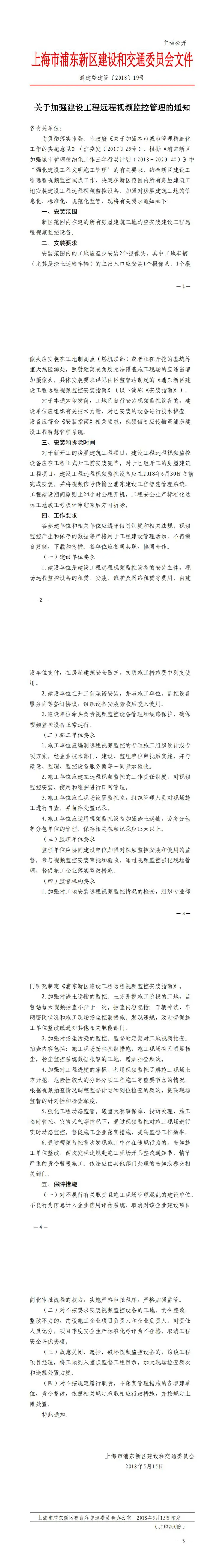 关于加强建设工程远程视频监控管理的通知【浦建委建管〔2018〕19号】