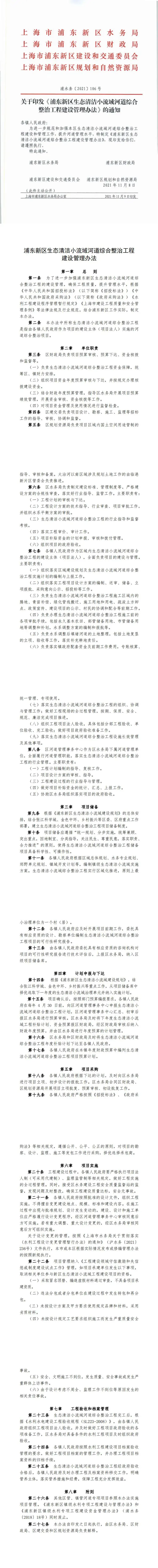 关于印发《浦东新区生态清洁小流域河道综合整治工程建设管理办法》的通知【浦水务〔2021〕106号】