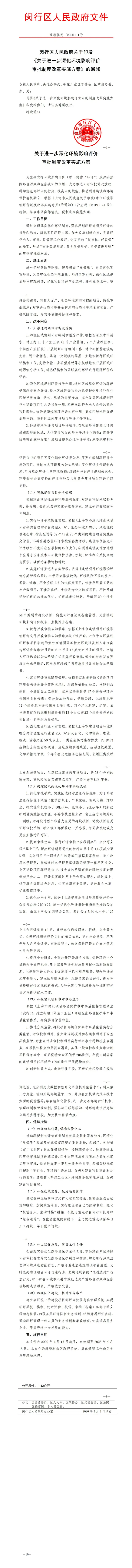 [闵行]关于印发《关于进一步深化环境影响评价审批制度改革实施方案》的通知【闵府规发〔2020〕1号】