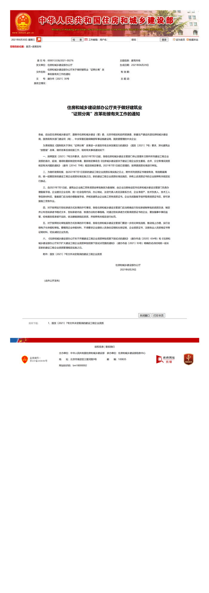 住房和城乡建设部办公厅关于做好建筑业“证照分离”改革衔接有关工作的通知-建办市〔2021〕30号