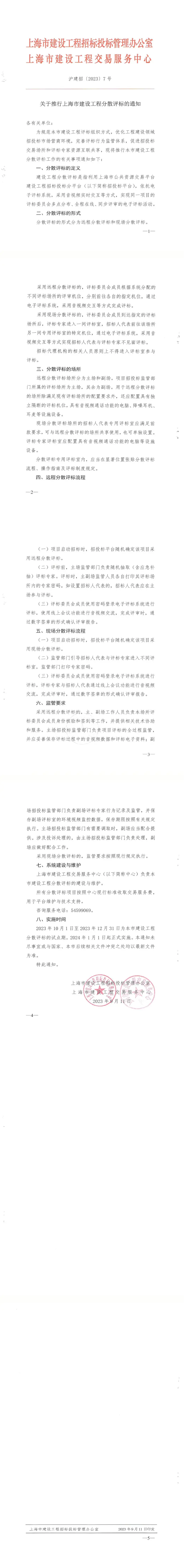 关于推行上海市建设工程分散评标的通知【沪建招〔2023〕7 号】