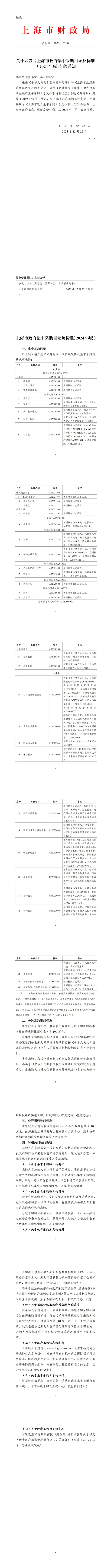 [市财政局]关于印发《上海市政府集中采购目录及标准(2024 年版)》的通知【沪财采〔2023〕32号】